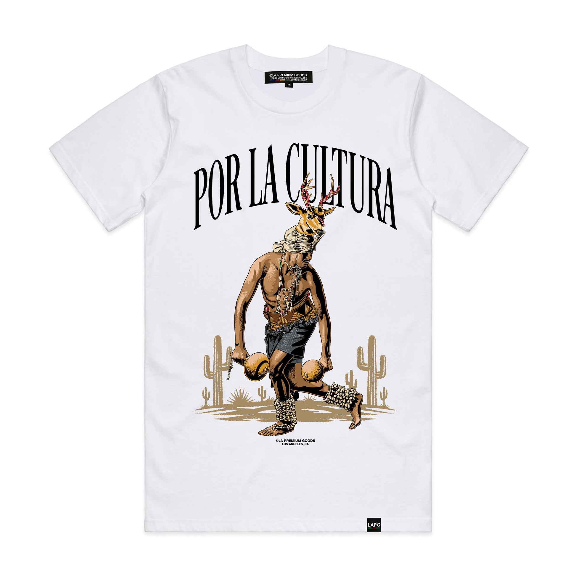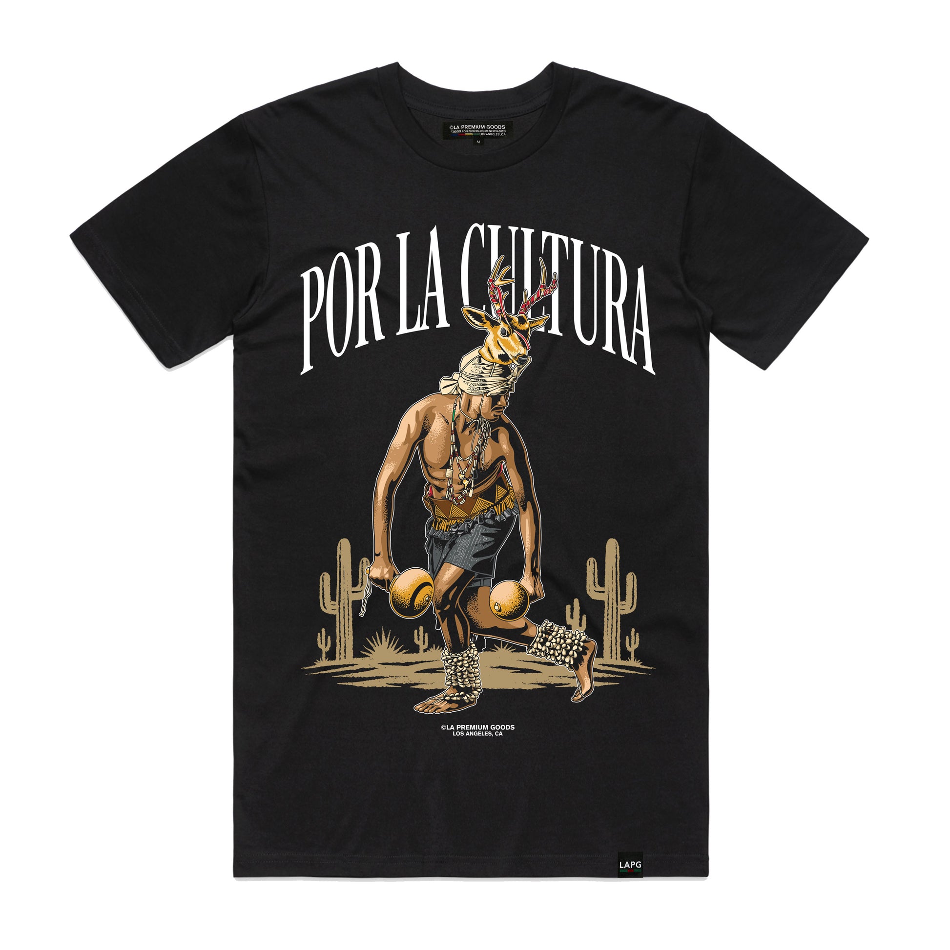The Danza del Venado T-Shirt by LA Premium Goods "Por LA Cultura Collection" honors one of the most sacred traditional dances of Indigenous Mexico State of Sonora—symbolizing life, sacrifice, and harmony with nature. This design carries the spirit of ancestral ceremony, re-imagined through a modern luxury lens.