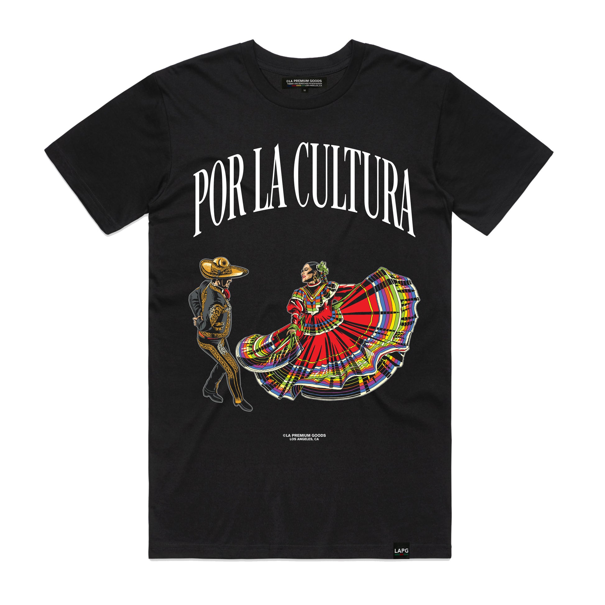 Celebrate the spirit of tradition through elevated design. The Jarabe Tapatío Tee from LA Premium Goods pays tribute to Mexico’s iconic folk dance, blending traditional emblems with a refined luxury streetwear aesthetic. Part of the “Por La Cultura” collection, this piece honors cultural roots while delivering a modern, high-end look made for everyday statement wear.